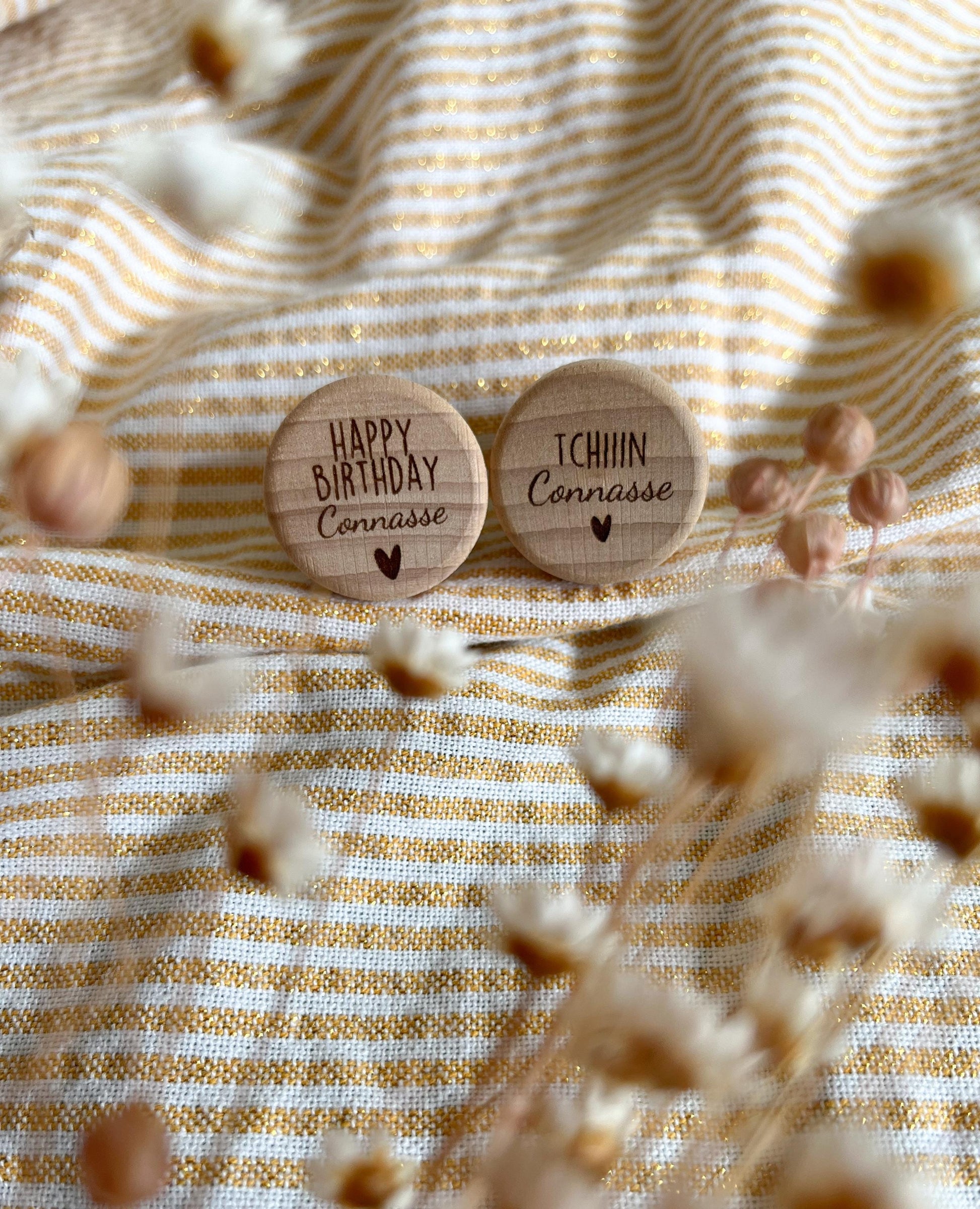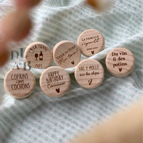 Offrez un cadeau original, écoresponsable et minimaliste avec ce bouchon personnalisé en bois européen et liège portugais. Parfait pour faire passer un joli message ou marquer une belle annonce !