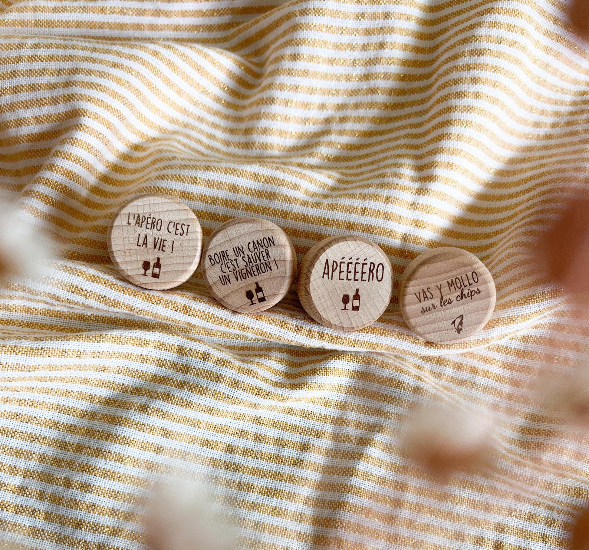 Chaque pièce est unique : le bois peut présenter des variations naturelles de couleur. Cela fait tout le charme de ces bouchons faits avec amour.