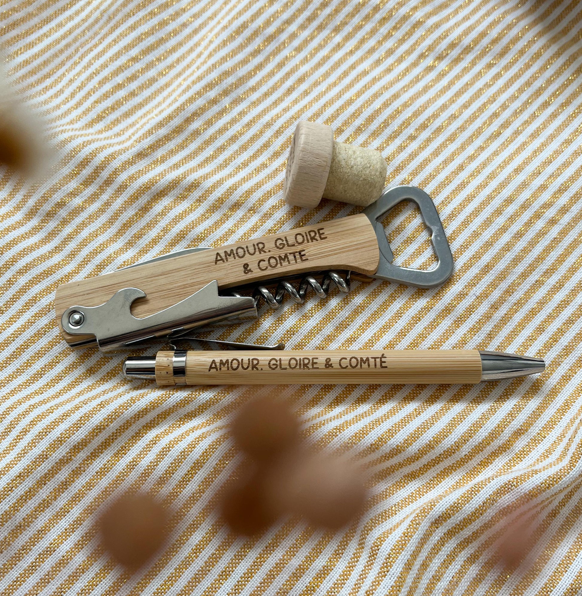🍷 Un tire-bouchon gravé – Pratique et robuste, idéal pour ouvrir vos bouteilles avec style.